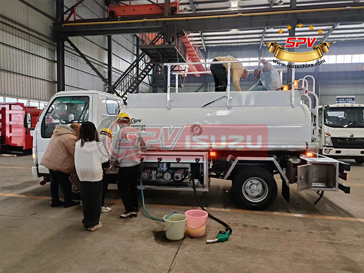 These 3 units fuel tank truck adopted with ISUZU N-series ELF chassis, ISUZU engine(4KH1CN5MD), 4X2 left-hand drive, the power is 115 PS, speed is about 95KW\H, and the tank material is stainless steel, capacity of tank is 4,000 litres (1000 gallons), during the production, the clients have visited SPV factory for a pre-delivery inspection in early of April, after the inspection, the clients were very satisfied with the trucks and our service.