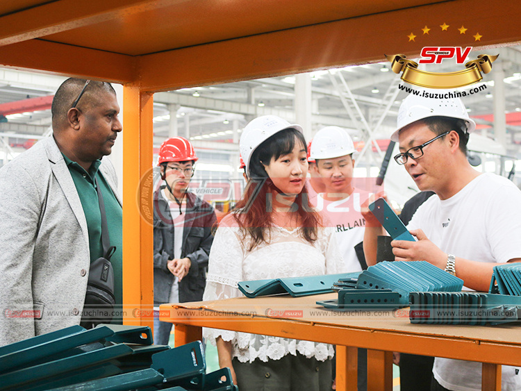 Mrs Chen shows the vacuum truck’s construction to client in factory-II